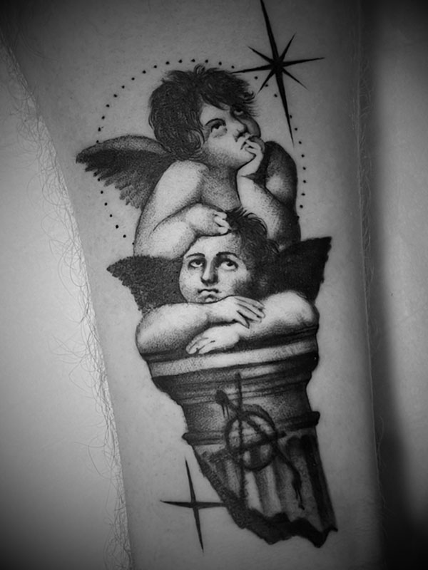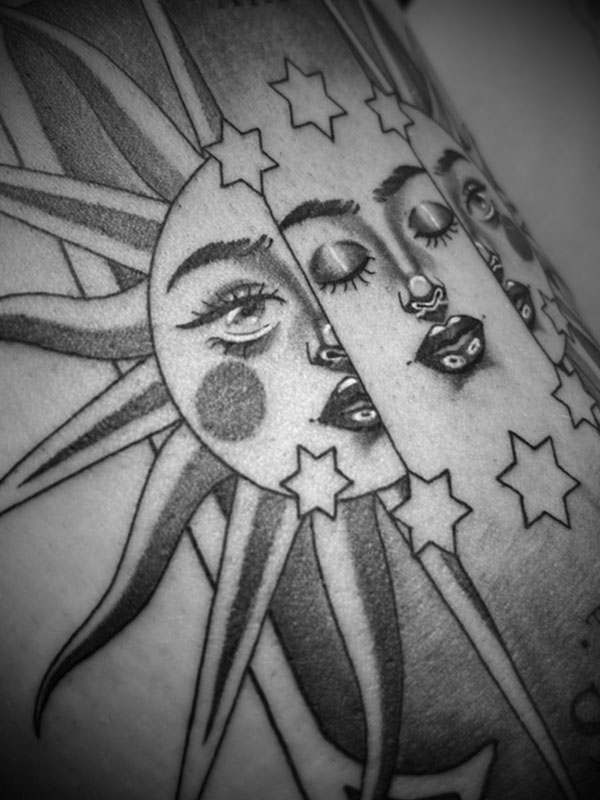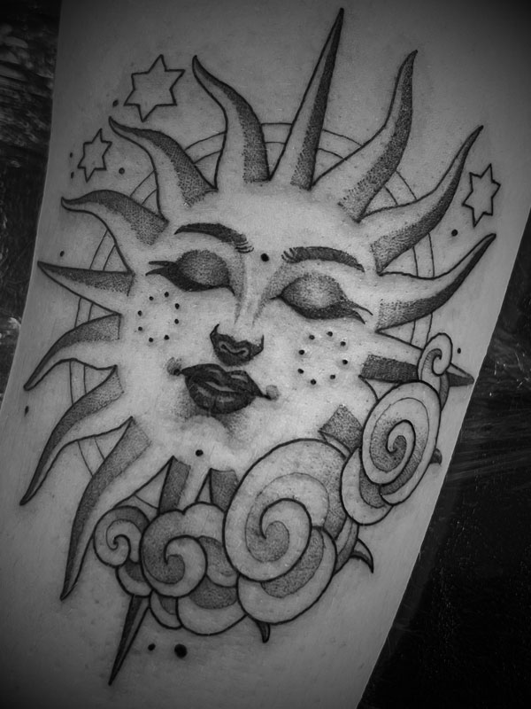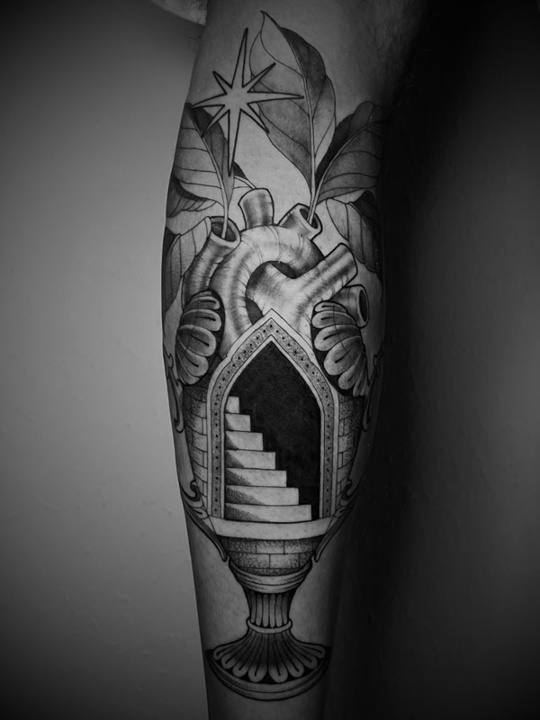 Vejo a tatuagem como uma troca: escuto o cliente, explico limites técnicos e desenvolvo a ideia até que ela encontre minha estética. Muitas vezes, ajudo a nomear algo que ainda não sabe ser dito - e é aí que o projeto acontece.