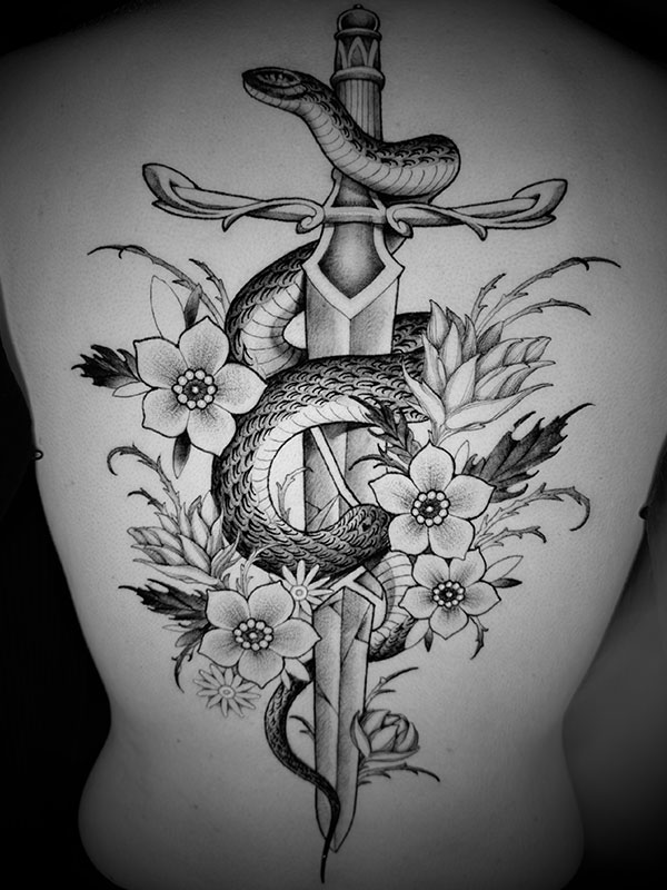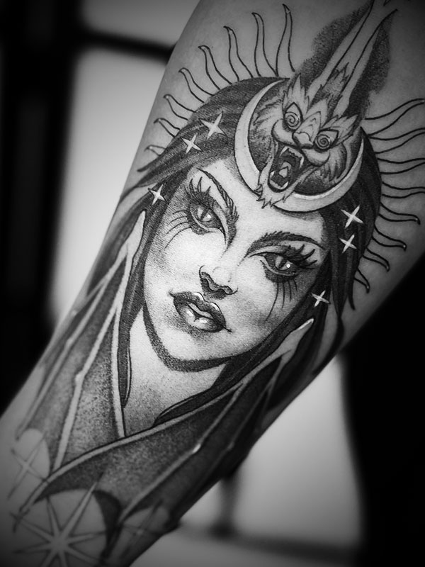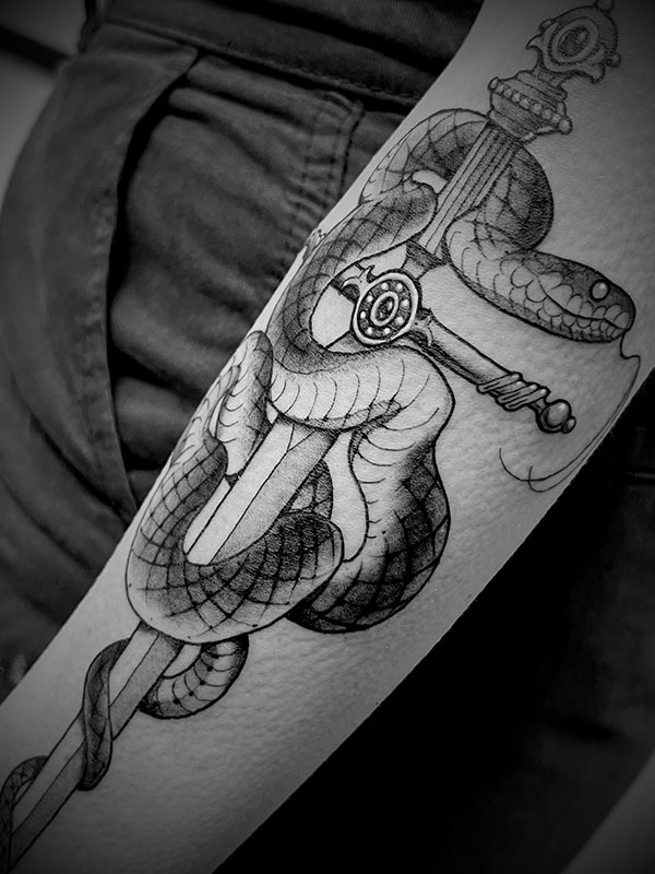 Meu trabalho costuma ser associado a blackwork, fineline ou neotradicional, mas desenho até fazer sentido. Não copio trabalhos prontos. Referências existem para ampliar possibilidades, não para limitar a criação.